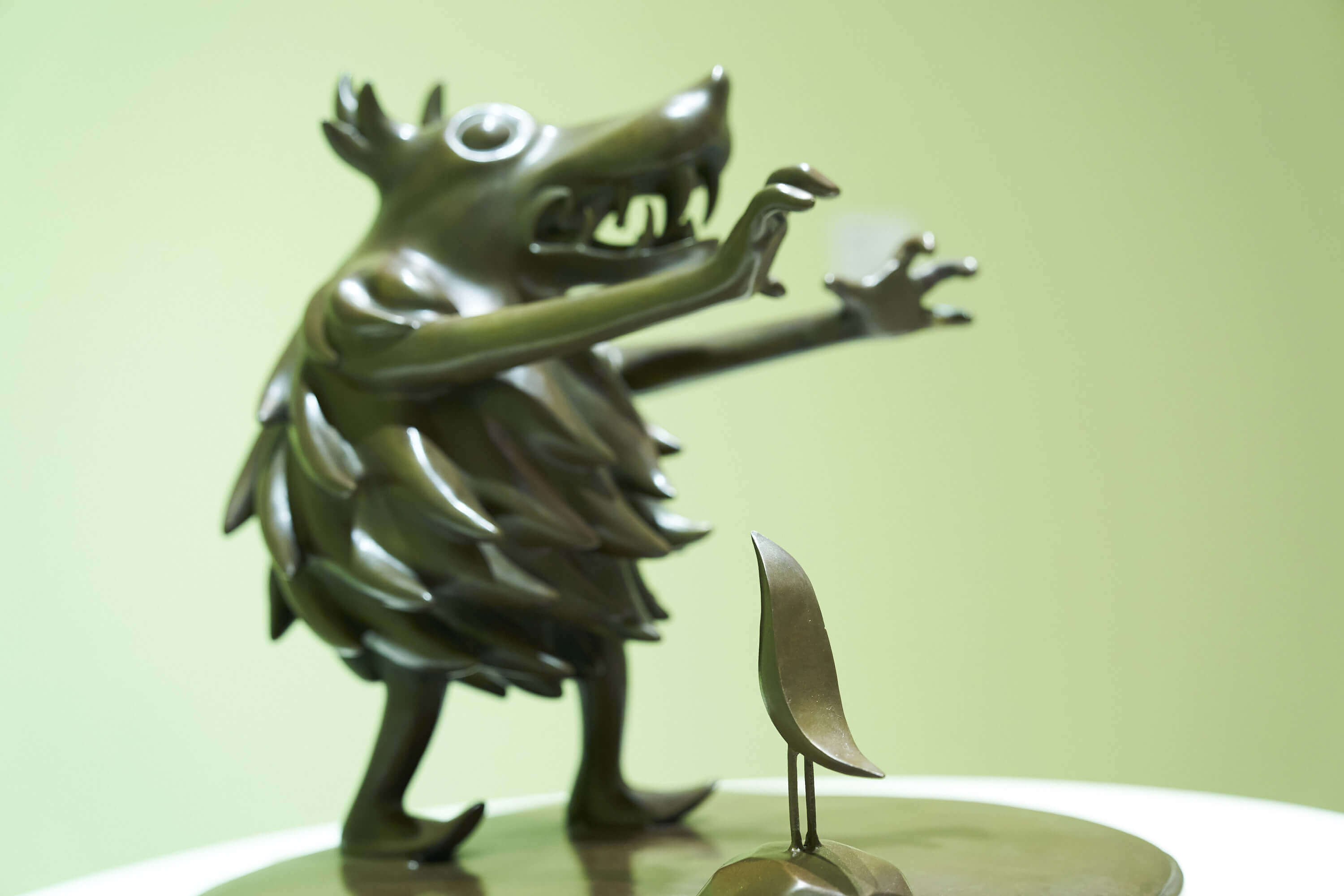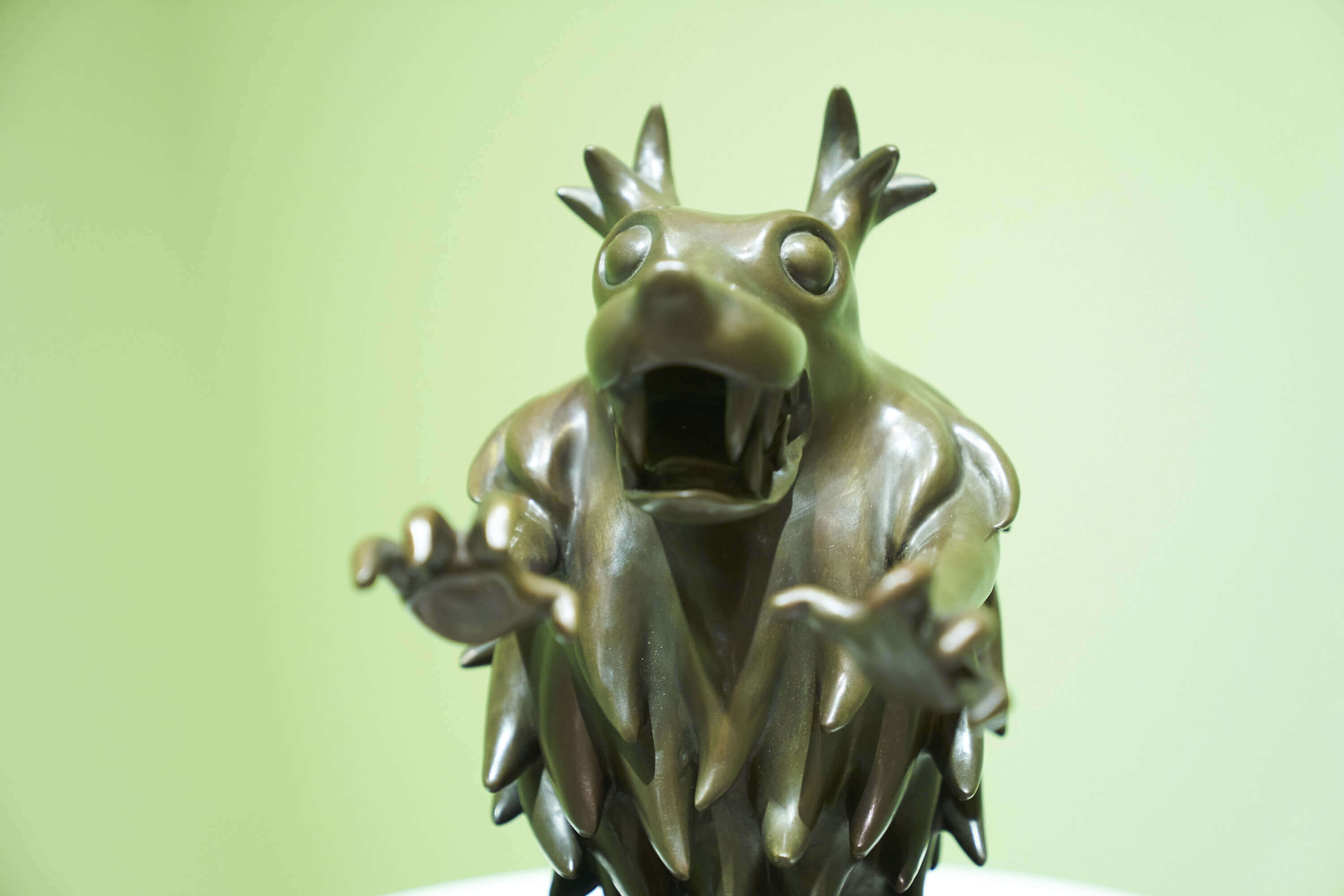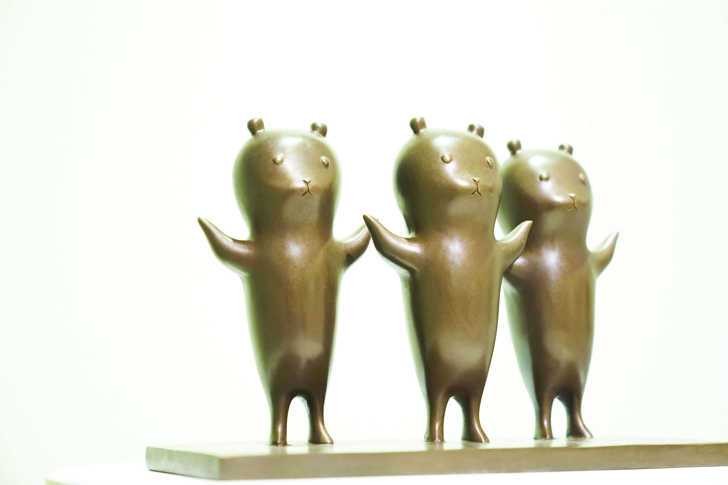 同時擁有傳統雕塑技巧、以及數位創作的雙重奏,因此莊雁婷的作品當中,有兩個非常不同的分野;剛開始製作小件的藝術品時,仍舊承襲傳統油土雕塑的方式,經過翻模而成的雕塑,這個時期的她,並沒有萌發對於材質處理的想像,而是單純以命題和作品的表達,成為自己創作的一個開始,單純、簡潔,卻很有故事性。