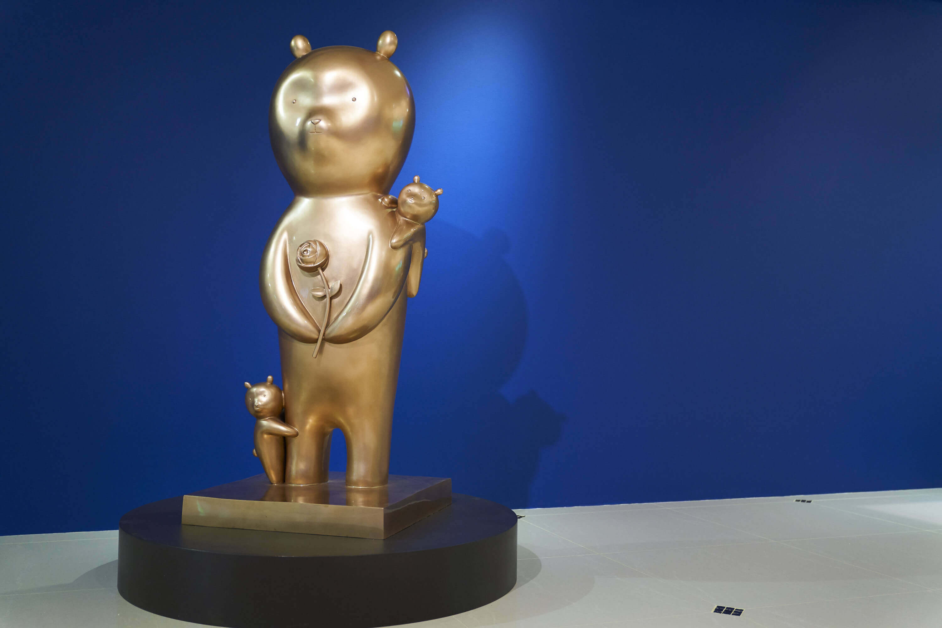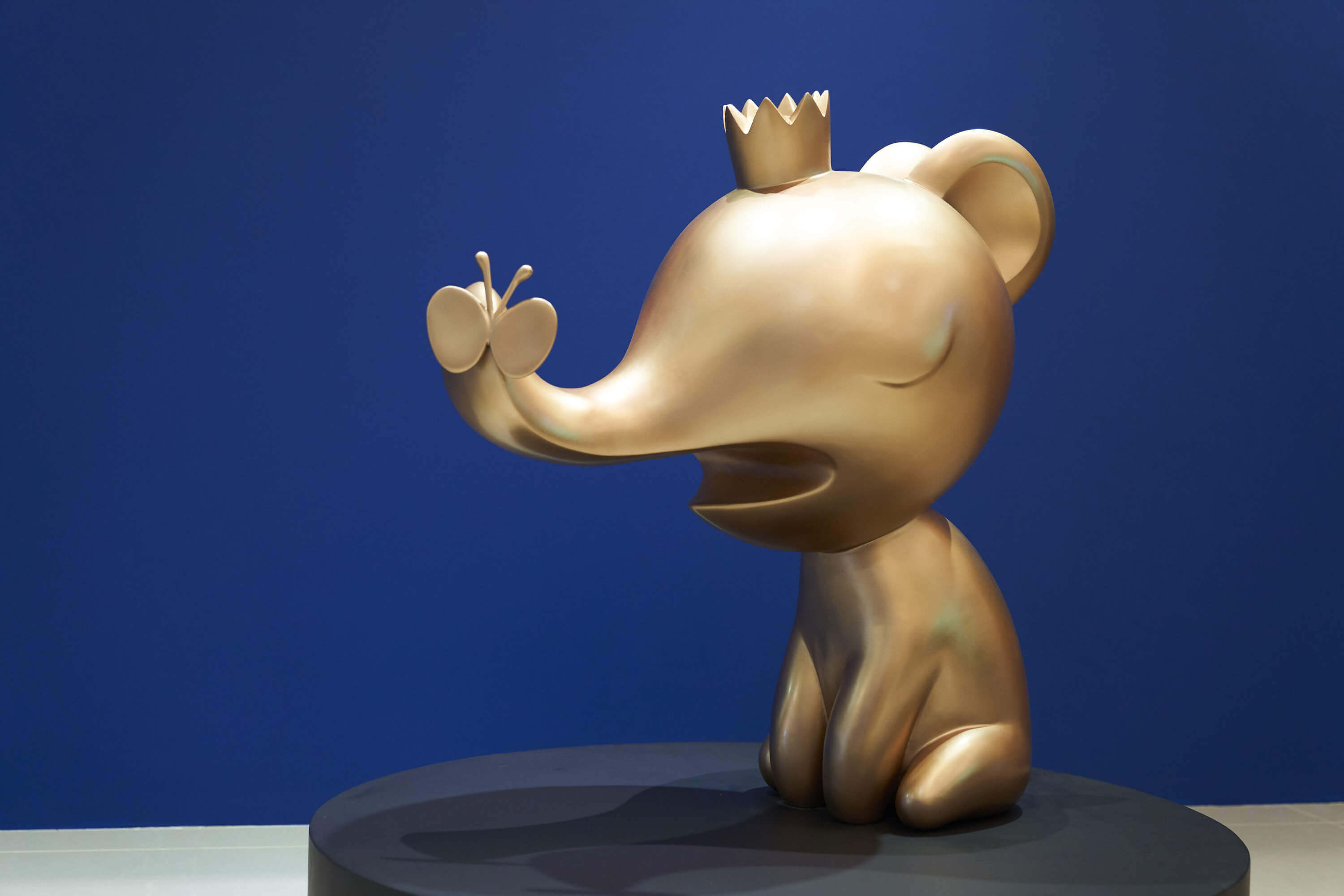 主題作品《不眠的夜》這件雕塑品,正是以磷青銅拋光成玫瑰金的作品,而背後的作品故事,就是文章一開頭的那段下雪夜裡的步履,忽然出現的黑蝴蝶,點醒了她的創作靈感,小象鼻頭上的蝴蝶,就是那一晚出現的那隻黑蝴蝶,從此之後蝴蝶便一直停在這裡,再也不會離開莊雁婷的身邊,成為了她作品上,畫龍點睛的場景縮影,在觀看作品的時刻裡,又可以知道藝術家在那個夜晚,發生了一個不可思議的蝴蝶效應。