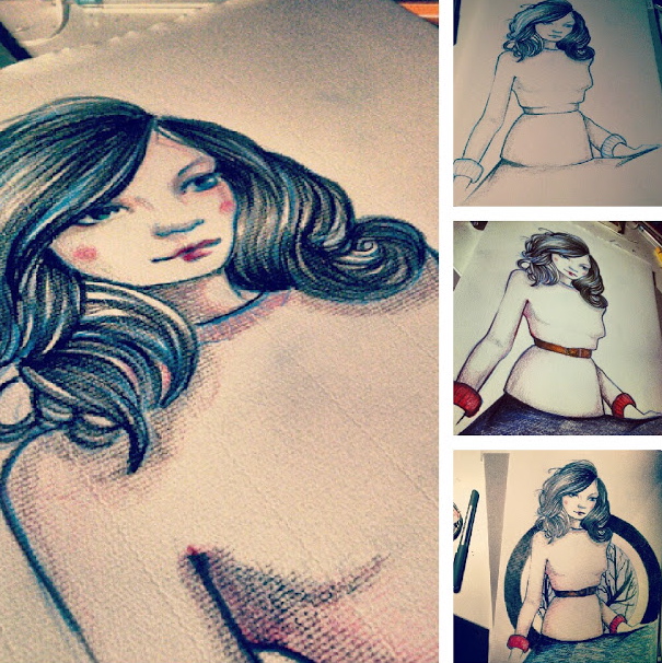 筆下的女性Raquel Carrero極著重於頭髮細部描繪,來象徵女性獨特嫵媚氣質。不僅如此她還善於用不同的材質給筆下清新素雅的女呈現出不同的風貌,搭配上花朵項鏈裝飾美麗的衣服,在她的巧手下都幻變成為時尚現代女性