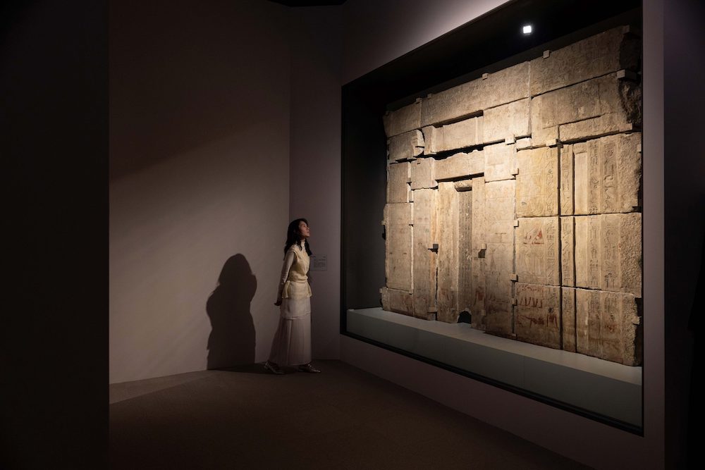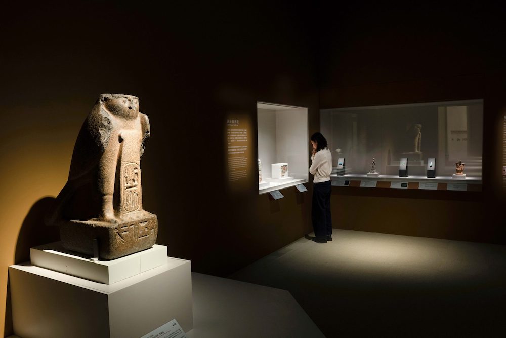 展場接著迎來單元二「從神而來」,透過法老與神祇的關係,呈現法老如何以「眾神」之名取得統治的正當性。單元三「身為大祭司的王」則將展場色調轉為象徵能量的紅色,設計上汲取古埃及神廟的「空間序列」為靈感,營造出由外而內、層層遞進的神聖氛圍。