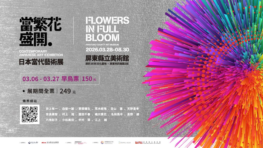 「當繁花盛開—日本當代藝術展」從全球當代藝術領銜者的經典,到新生代創作者的靈魂語彙,展開日本藝術從戰後至今的演變與對話。展覽自2026年3月28日起至8月30日止,於屏東縣立美術館展出,可於線上或現場購票,早鳥票將於3月6日起至3月27日於線上販售,限時優惠價150元;展期間全票249元。誠摯邀請您蒞臨本展,走入歷史與當代交織的空間,親身探尋日本當代藝術在歷史傳承與變革中盛放的多元姿態。