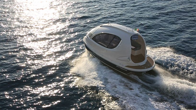 參考太空船的外形,由意大利設計師 Pierpaolo Lazzarini 所設計的膠囊快艇 “ jet capsule ” 突破傳統船型結構,以未來感的蛋型船身展現輕巧高速感的絕佳性能,內部舒適寬敞約莫可容納四人,早上可以在船頂享受日光浴,夜晚營造氣氛的照明設備顯得相當有格調, jet capsule 以特殊的外觀在眾船中脫穎而出, 可以作為假日與幾個朋友小酌並歡度一晚的娛樂場所。