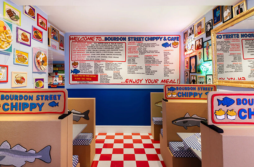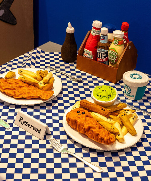 以65,000片手工剪裁縫製的毛氈為媒材,重現了英國道地炸魚薯條店的視覺細節與物件,還透過空間設計與物質感的構築,重新詮釋「熟悉感」與「公共空間」的化學反應,是一場以日常生活為場景的美學實驗,同時亦挑戰了藝術、設計與社會文化之間的邊界。