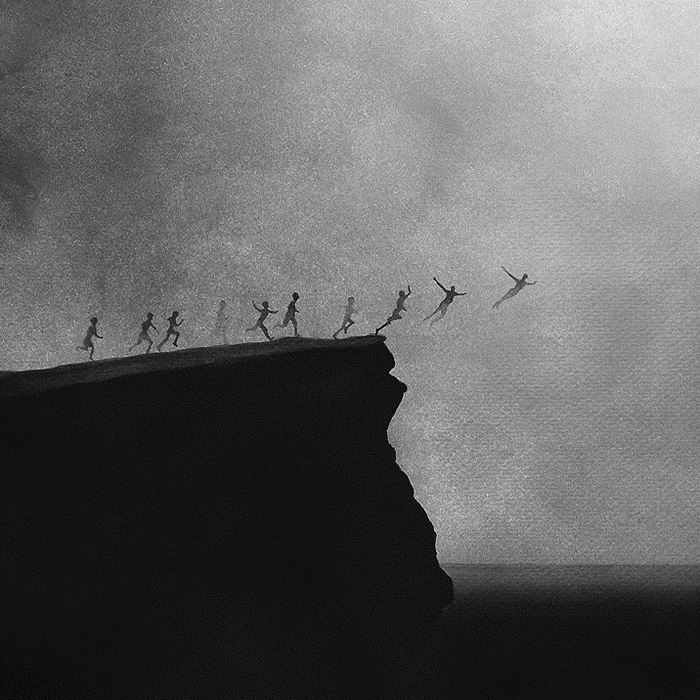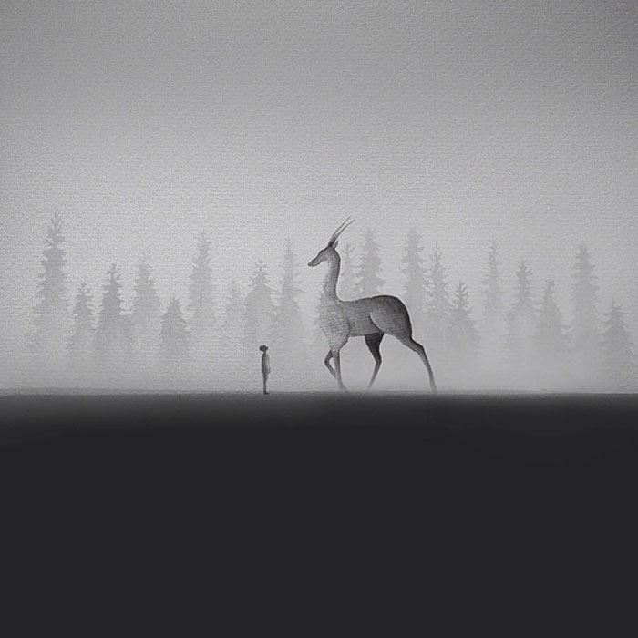 來自印尼的藝術家 Elicia Elidanto 以黑白水彩的形式呈現出兒童與野生動物之間危險的親密關係。在她的畫作中孩童與野生動物比肩而立,以黑白的輪廓描繪出寧靜、雄偉的場景,但卻又帶給觀賞者一種危險的無形張力!