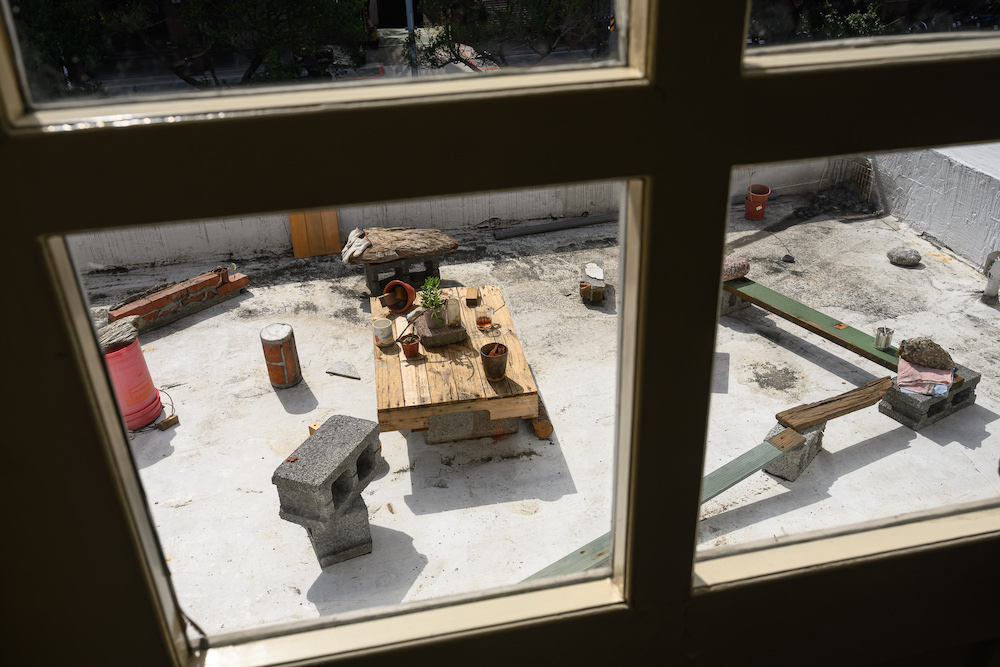 展覽由「國家氧」成員賴志盛的《二階堂》揭開序幕,入口可見自天花板懸空垂下的雙腳,其上方所對應的,正是人們圍坐的茶几,作品延續藝術家於特定空間中創造新關係的實踐,同時展現國家氧對於偶遇與新遊戲可能性的美學期待。