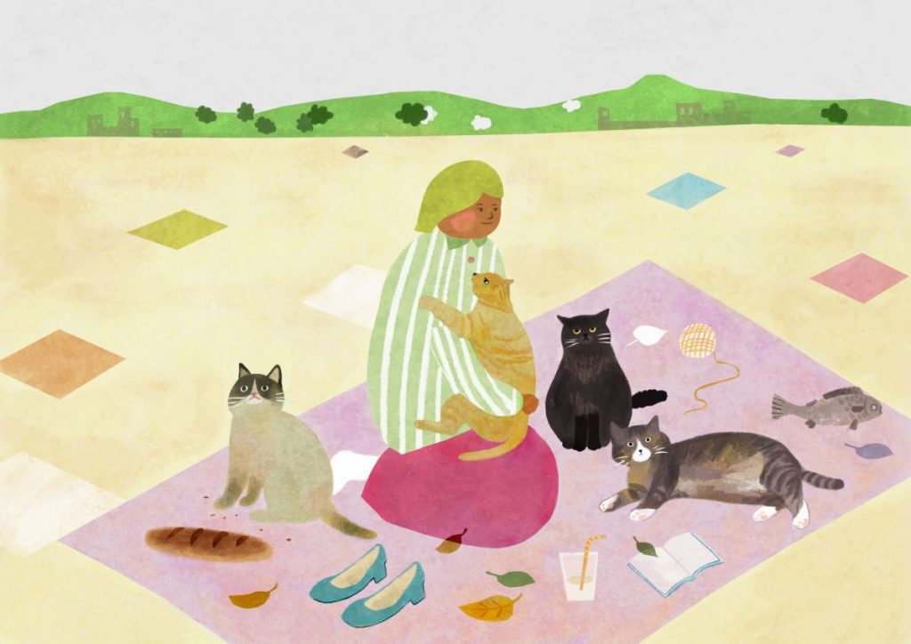 Mollycheang表示,由於她運動視神經不佳,平常除了玩《生還者2》等遊戲外,喜歡到公園走走、看看風景等較為靜態的活動。於是在她的作品中,也能見到好幾幅跟公園有關的主題──小學生在飄落的杏葉下、人與貓在空地中鋪了地墊嬉遊等等畫面,多彩幾何構成的平面性畫面,讓人在某些地方看見了遊戲的背景氛圍。然而每一幅所顯示的日常卻與遊戲的刺激不同,是如此平淡寧靜,並且散發出插畫家心靈感受到的美麗與喜悅。