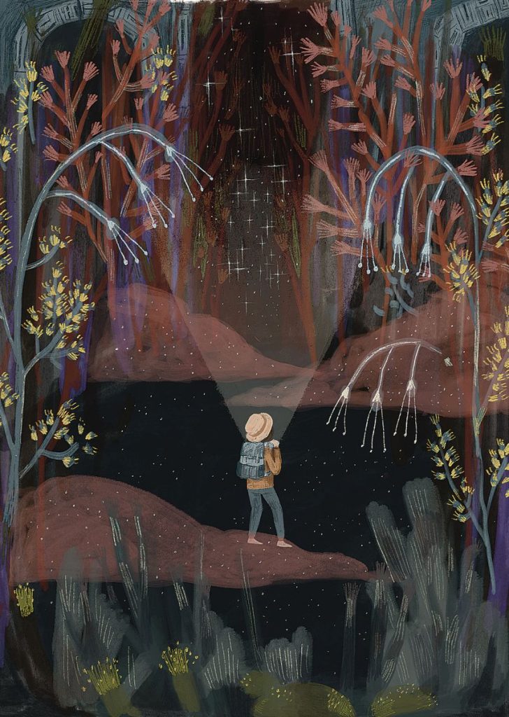 明明是平面作品,卻有深不見底的意境感,Poppy的畫風有一股魔力,令人端看一眼就被深深吸引。那樣滿是細節、幻象的構圖方式,將看似平凡的景貌,透過想像力擴展,道出一則則存在於自然中,你我尚未發覺的迷人故事。